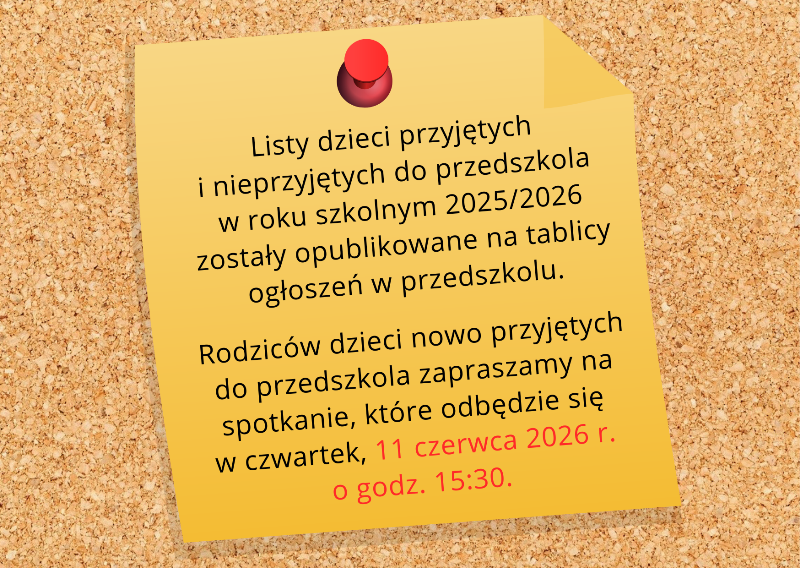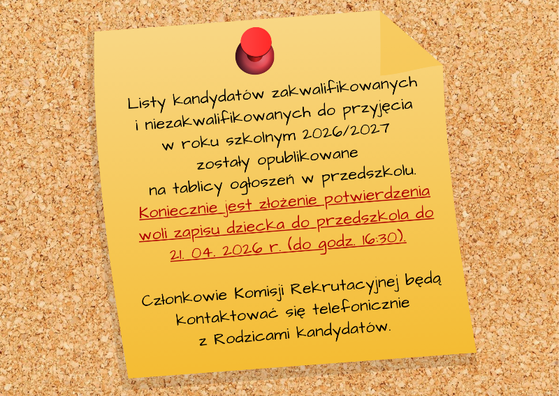 Wyniki postępowania kwalifikacyjnego kandydatów do przyjęcia do przedszkola (lista opublikowana 10 kwietnia 2026 r.)