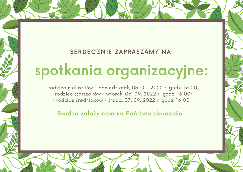Spotkania organizacyjne z rodzicami - wrzesień 2022 r.