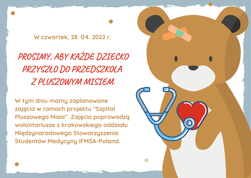Zajęcia w ramach projektu "Szpital Pluszowego Misia" - 28. 04. 2022 r